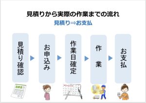 上記の流れでお見積りさせていただき、作業をさせていただく流れです。